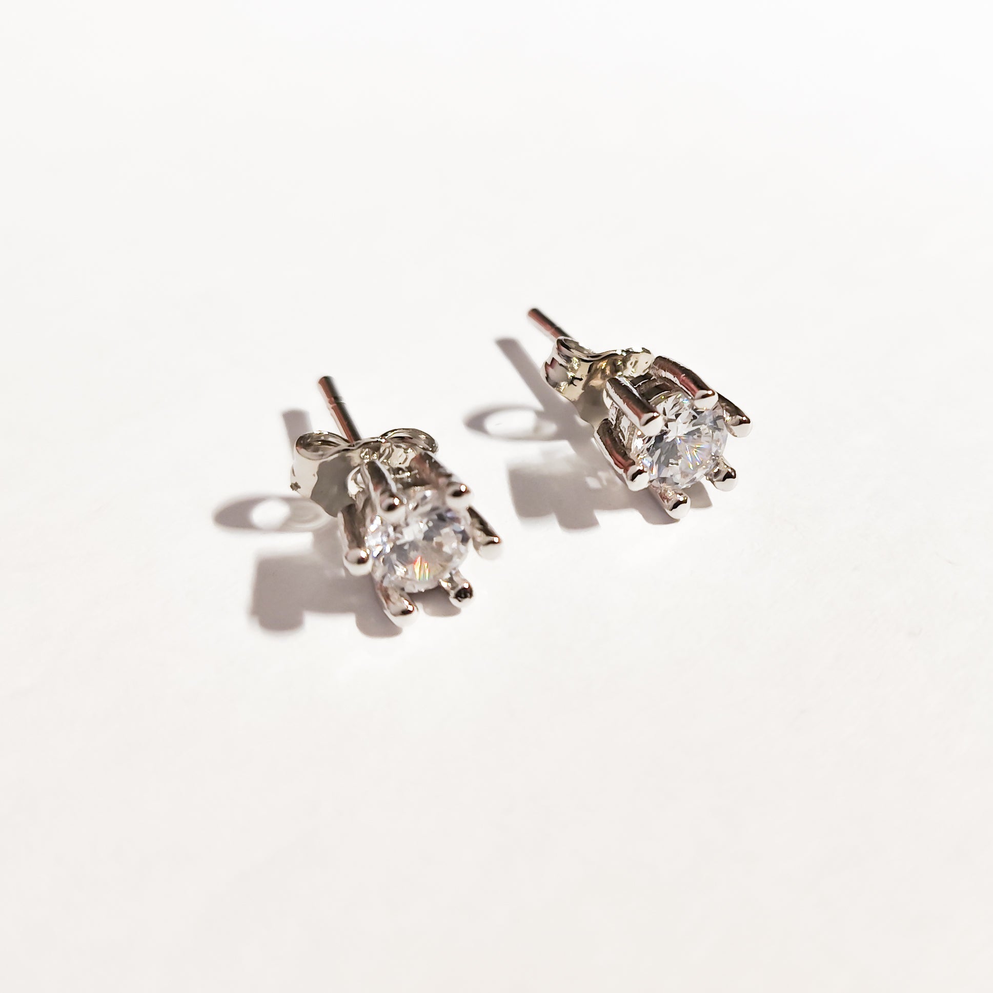 Elegant Silver Stud Earrings with Round-Cut Cubic Zirconia – 6-Prong Basket Setting