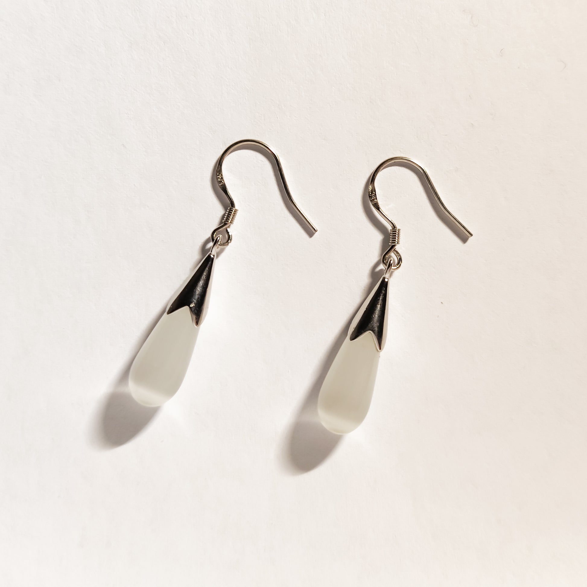 Ethereal Cat's Eye Drop Earrings - White